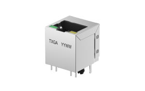 RJ45 Connector 180°Vertical, 1Port, Gold flash, Black, L:yellow, R:green,