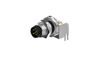 Front fastened M8X1.0 Male Socket , D-Coded , 4Circuits , Pin , 90° Vertical , Through Hole, with shield