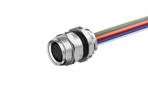 M8X1.0 Front fastened M10X0.75 female socket, A Coded 8pin, with lize L=200mm, free end