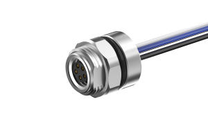 M8X1.0 Front fastened M12X1.0 female socket, B Coded 5pin, with lize L=200mm, free end