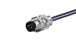 M8X1.0 Rear fastened M8X0.5 male socket, A Coded 2pin, with lize L=200mm, free end