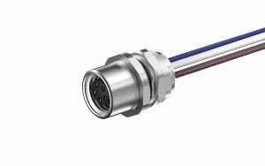 M8X1.0 Rear fastened M10X0.75 female socket, B Coded 5pin, with lize L=200mm, free end