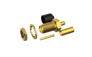SMA, Jack, 50Ohm, socket, 180° Vertical, Nut lock, Crimp (With dust cap)