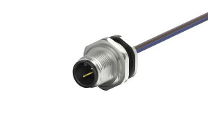 M12 male circular connector, unshielded, single wire, 2-core, A-code IP68, PG9, Front lock