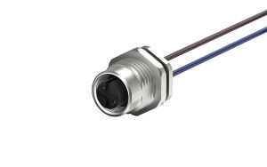 M12 female circular connector, unshielded, single wire, 2-core, A-code IP68, PG9, front lock