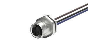 M12 female circular connector, unshielded, single wire, 3-core, A-code IP68, PG9, front lock