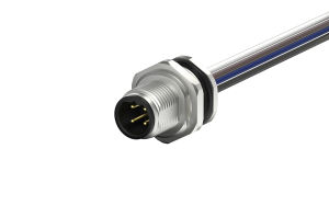 M12 male circular connector, unshielded, single wire, 4-core, B-code IP68, PG9, Front lock