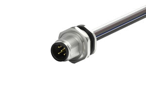 M12 male circular connector, unshielded, single wire, 5-core, B-code IP68, PG9, Front lock