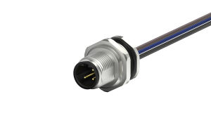M12 male circular connector, unshielded, single wire, 3-core, D-code IP68, PG9, Front lock