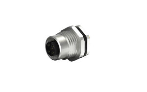 M16X1.5, Front lock circular connector, Female, Socket, Acoding, 5Circuits, Vertical(180°), Through hole