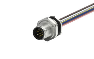 M12 male circular connector, unshielded, single wire, 7-core, A-code IP68, M16X1.5, Front lock