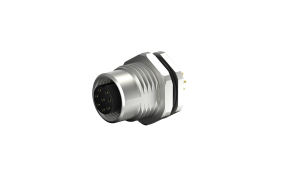 M16X1.5, Front lock circular connector, Female, Socket, Acoding, 8Circuits, Vertical(180°), Through hole