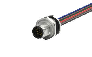 M12 male circular connector, unshielded, single wire, 9-core, A-code IP68, M16X1.5, Front lock