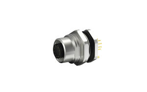 M12 female socket, shield, through-hole welding, IP68, M16X1.5, front lock, A code, 9 cores