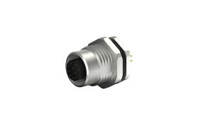 M16X1.5, Front lock circular connector, Female, Socket, Acoding, 11Circuits, Vertical(180°), Through hole