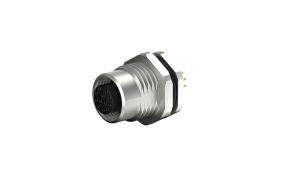 M16X1.5, Front lock circular connector, Female, Socket, Acoding, 12Circuits, Vertical(180°), Through hole
