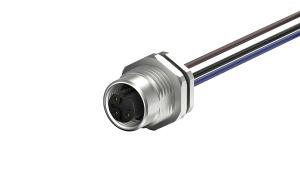 M12 female circular connector, unshielded, single wire, 3-core, B-code IP68, M16X1.5, Front lock