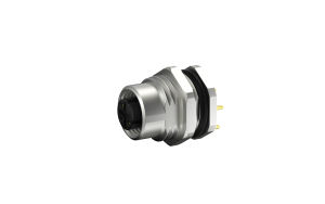 M12 female socket, shield, through-hole welding, IP68, M16X1.5, front lock, D code, 3 cores