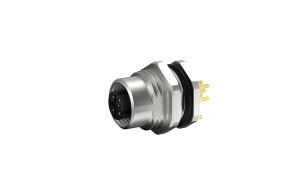 M12 female socket, shield, through-hole welding, IP68, M16X1.5, front lock, codes D, 5 cores