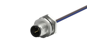 M12 male circular connector, unshielded, single wire, 2-core, A-code IP68, PG9, Rear lock