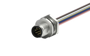 M12 male circular connector, unshielded, single wire, 7-core, A-code IP68, PG9, Rear lock