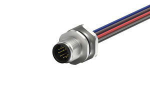 M12 male circular connector, unshielded, single wire, 10-core, A-code IP68, PG9, Rear lock