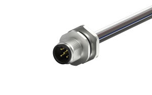 M12 male circular connector, unshielded, single wire, 5-core, B-code IP68, PG9, Rear lock