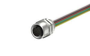 M12 female circular connector, unshielded, single wire, 8-core, A-code IP68, M12X1.0, Rear lock