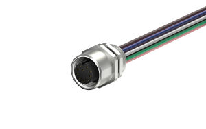 M12 female circular connector, unshielded, single wire, 10-core, A-code IP68, M12X1.0, Rear lock