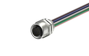 M12 female circular connector, unshielded, single wire, 11-core, A-code IP68, M12X1.0, Rear lock