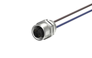 M12 female circular connector, unshielded, single wire, 2-core, B-code IP68, M12X1.0, Rear lock