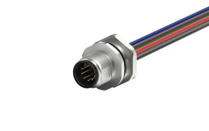 M12 male circular connector, unshielded, single wire, 9-core, A-code IP68, M16X1.5, Rear lock
