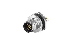 M16X1.5, rear lock circular connector, Male, Socket, A coding, 12Circuits, pin, Vertical 180°, Through hole