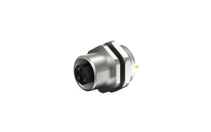 M16X1.5, rear lock circular connector, Female, Socket, Bcoding, 3Circuits, Vertical(180°), Through hole