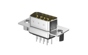 Stamping pin D-SUB, 9Circuits, Male, Socket, Vertical(180°), Through hole, Gold flash, Black,