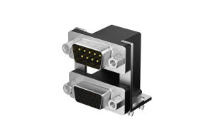 Stamping pin D-SUB, 24Circuits(9M+15F), Right angle(90°), Through hole, Gold flash, Black,