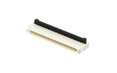 FPC/FFC Connector, 0.5mm, 22Circuits, Right angle(90°), SMT, Double contact , Back flip, H1