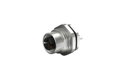M12 female socket, shielded, IP67, M16X1.5, front lock, Y-code, Through hole, 8 cores, CAT5e