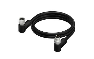 M8X1.0 A Coded 3pin, female right angle to male right angle with shield, PUR, cable length L=2m