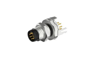 Front fastened M8x1.0 male Socket with section , A-Coded , 6Circuits , ST THT, with shield