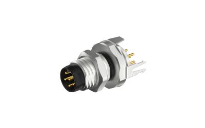 Front fastened M8X1.0 male Socket with section , A-Coded , 7Circuits , ST THT, with shield