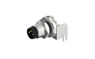 Front fastened M8x1.0 male Socket with section , A-Coded , 2Circuits , RA THT, with shield