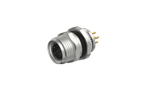 Front fastened M10X0.75 female Socket circle , A-Coded , 6Circuits , ST THT, without shield