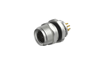 Front fastened M10X0.75 female Socket circle , A-Coded , 8Circuits , ST THT, without shield