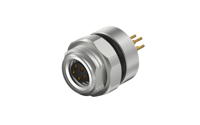 Front fastened M12X1.0 female Socket with section , B-Coded , 5Circuits , ST THT, without shield