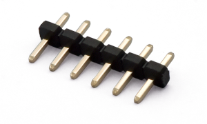 Pin Header 2.54mm, Single row, 6Circuits, 180° Vertical(DIP), Gold flash, PA6T