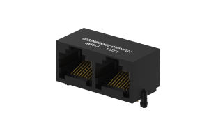 RJ45 Connector 90°Angle, 2Ports, Gold flash, Black, Non-LED,