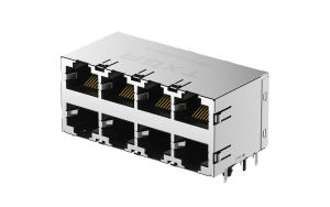 RJ45 Connector 90°Angle, 8Ports, Gold flash, Black, Non-LED,
