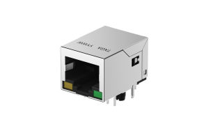 RJ45 Connector 90°Angle, 1Port, 6μ", Black, L:yellow, R:green, 100Base-T