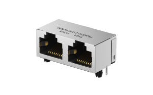 RJ45 Connector 90°Angle, 2Ports, Gold flash, Black, Non-LED,